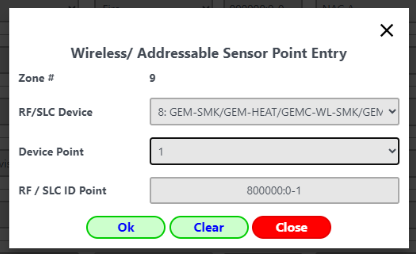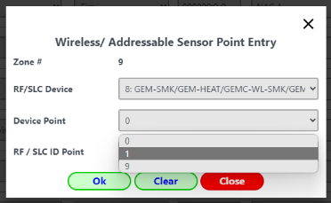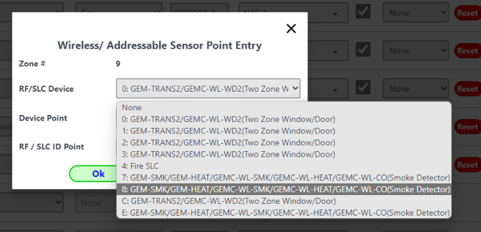 For example, if your wireless smoke detector RF/SLC begins with an "8", select "8" from the drop-down menu: