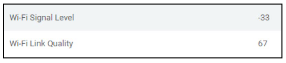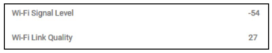 Shown below is an example of a camera that has an acceptable Wi-Fi Signal Level because, on the number line, ‒54 is "greater than" and "to the right of" ‒60 and therefore acceptable. However, the Wi-Fi Link Quality is unacceptable (27 is "less than" and "to the left of" 60):