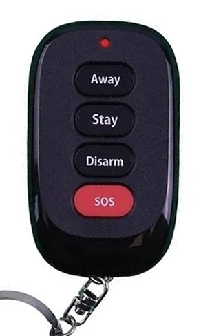 On the Prima PFOB Multi-Button Keyfob, shown below, to send an SOS signal you must press the red SOS button twice within 5 seconds. Upon the first button press, the blue LED at the top will illuminate, then press the SOS button again to send the signal.