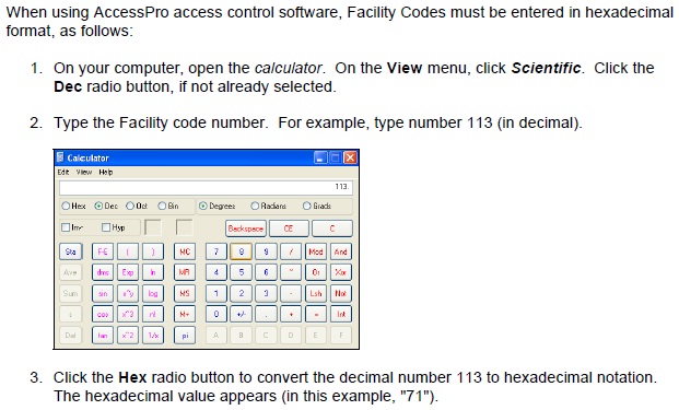 When using the AccessPro Access Control Software, how do I input facility codes in hexadecimal format?