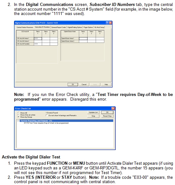 How do I to activate the keypad "digital dialer test" on GEM-P816, GEM-P1632 and GEM-P1664 Control Panels?