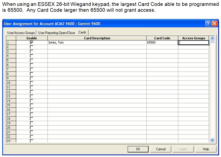 When using an ESSEX keypad with the GEM-ACM V2, are there any restrictions when programming card codes?