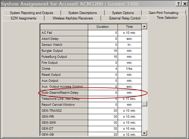 To prevent this automatic re-arming: Program a "0" (zero) in the "Auto Disarm / Rearm Delay" field.