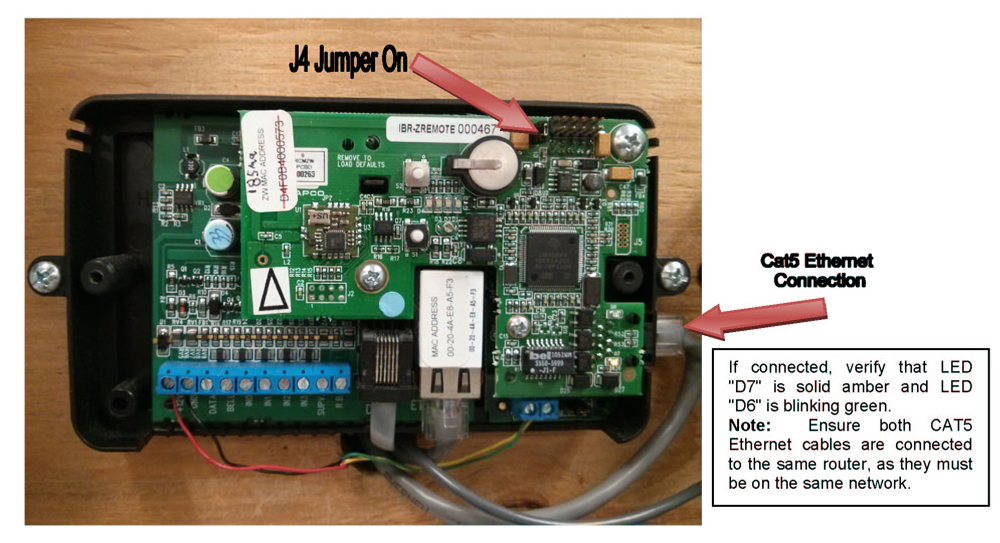 (1) Ensure the IBR-ZREMOTE jumper J4 is installed (J4 is located at the top right of the top PC board, next to the larger jumper J3).