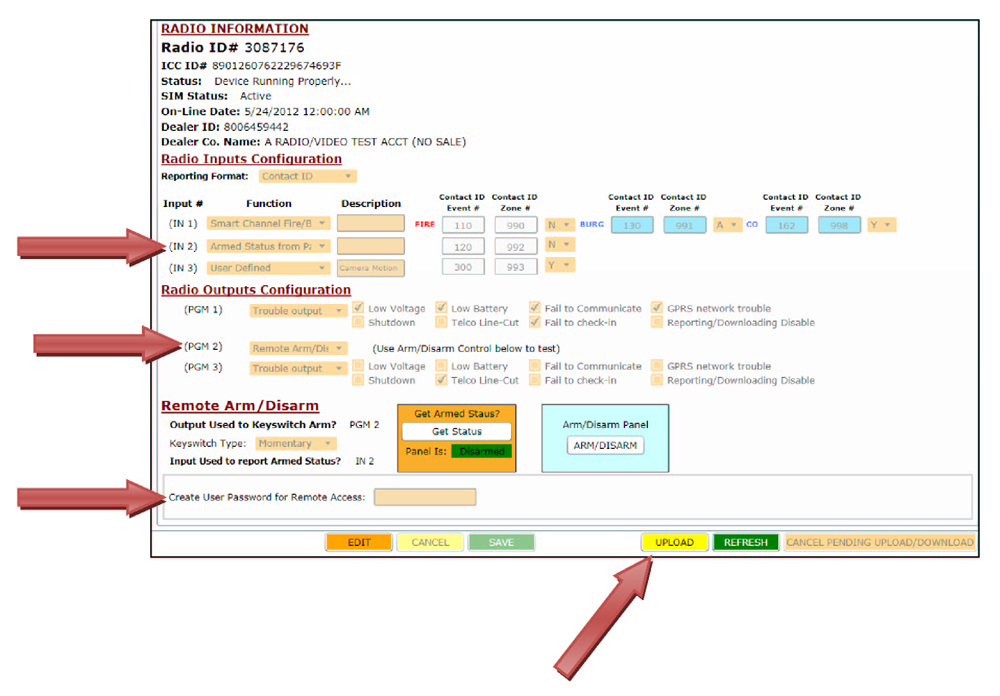 After updating the SLe-GSM radio firmware, why am I unable to arm or disarm through the StarLink Radio Management Center (SRMC) at the website www.napconoc.com?